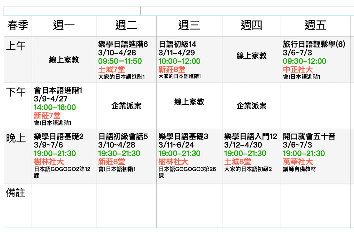 日文課表